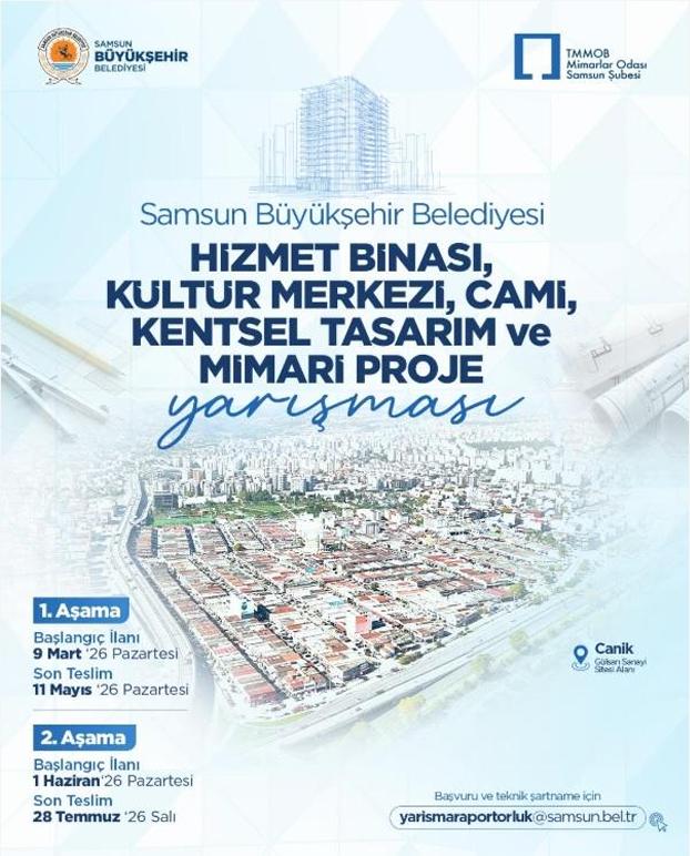 Samsun Büyükşehir Belediyesi Hizmet Binası, Kültür Merkezi, Cami, Kentsel Tasarım ve Mimari Proje Yarışması 09 Mart 2026, 00:00